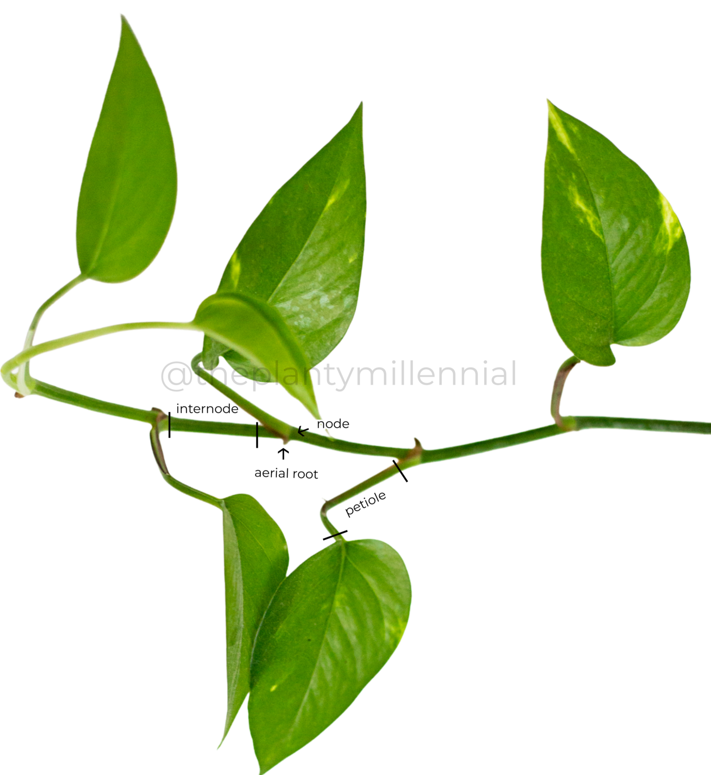 ❌ leaves or petioles (the little stems holding the leaves)